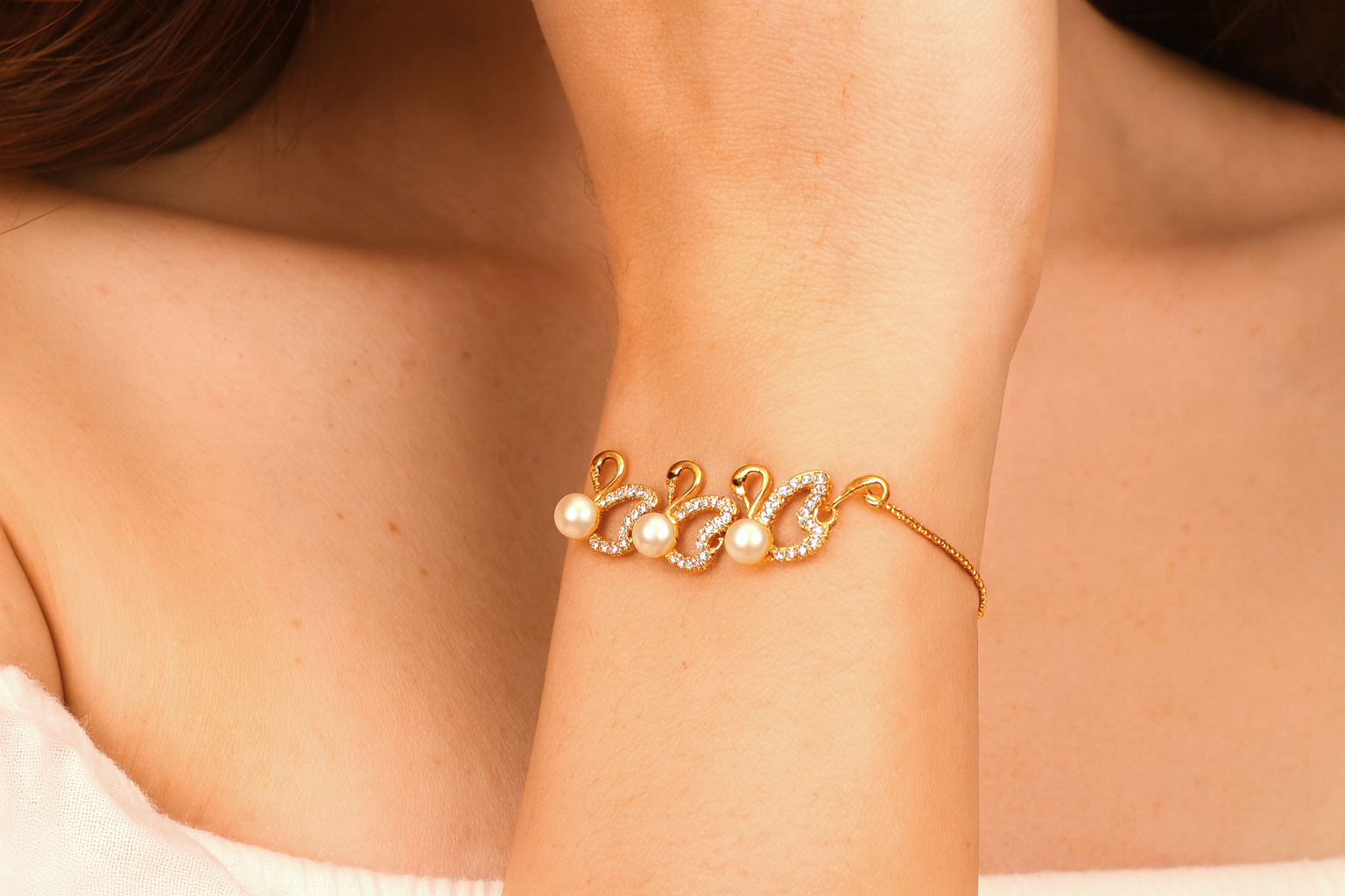 Rose Gold Swan Pearl Bracelet