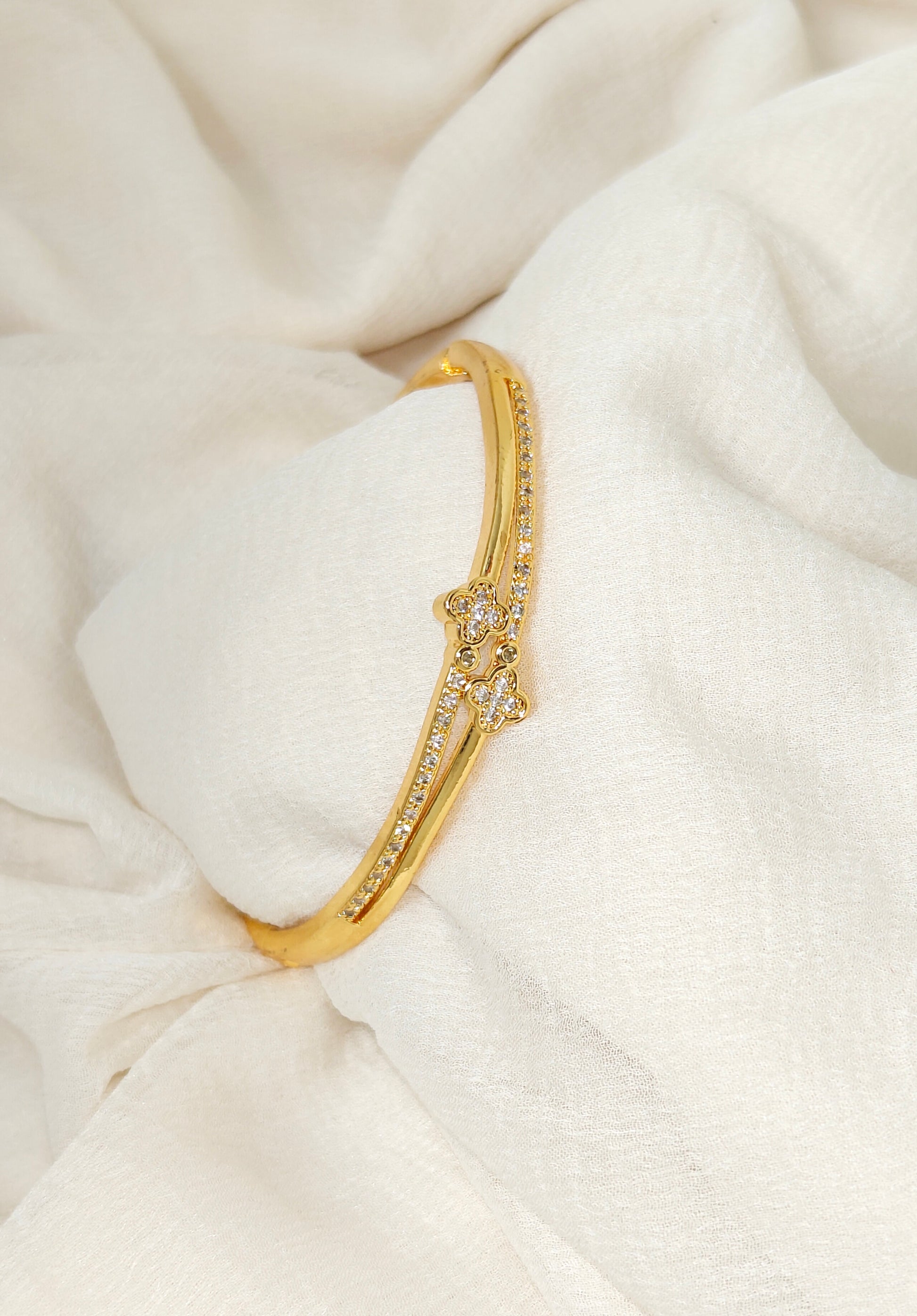 Slim Crystal Screw Motif Gold Bangle